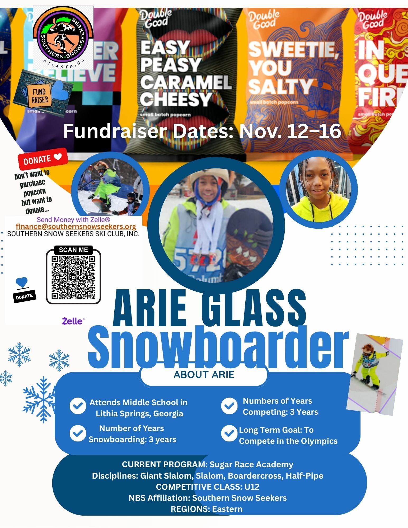 Hi, I’m Arie Glass—a snowboarder from Georgia chasing Olympic dreams.